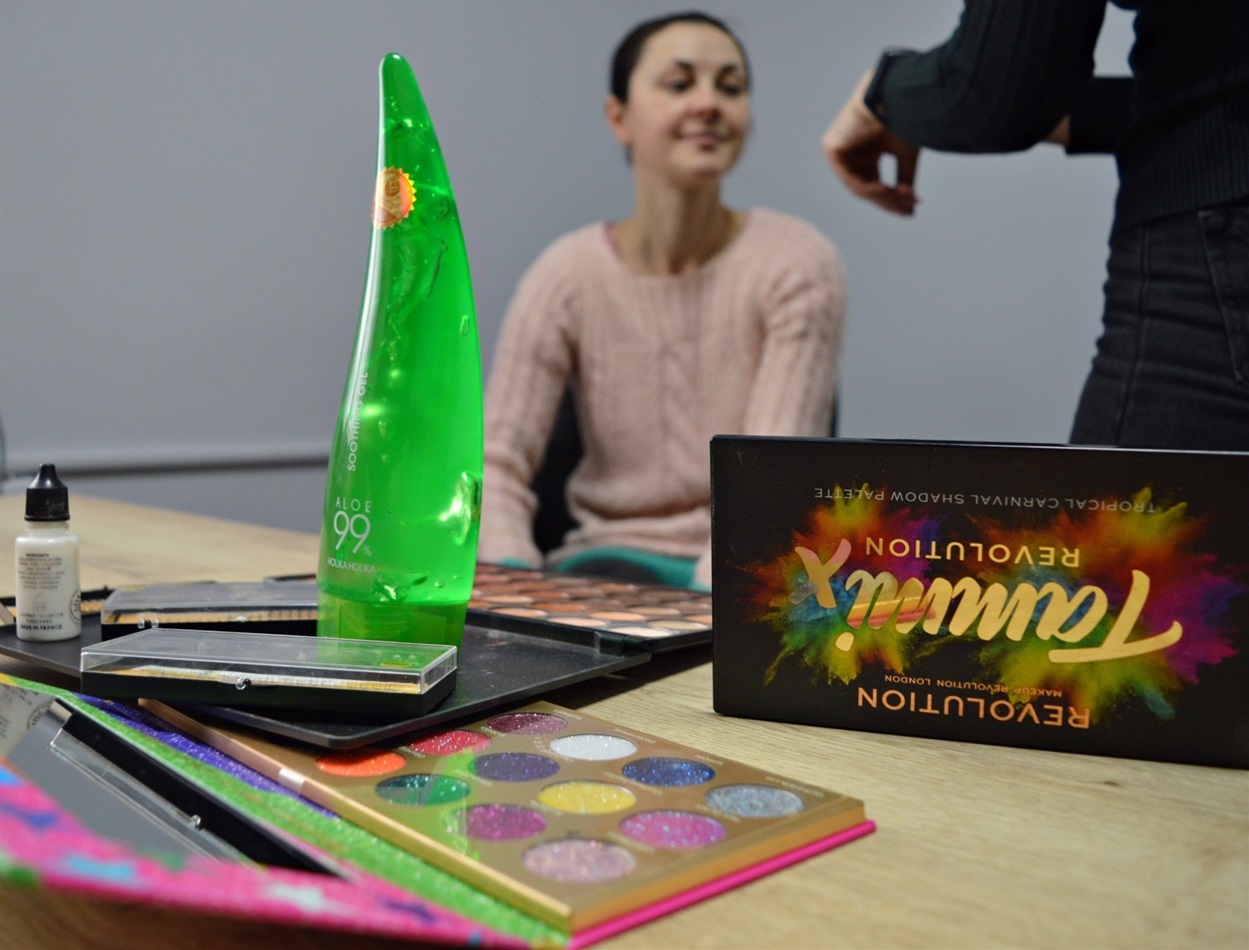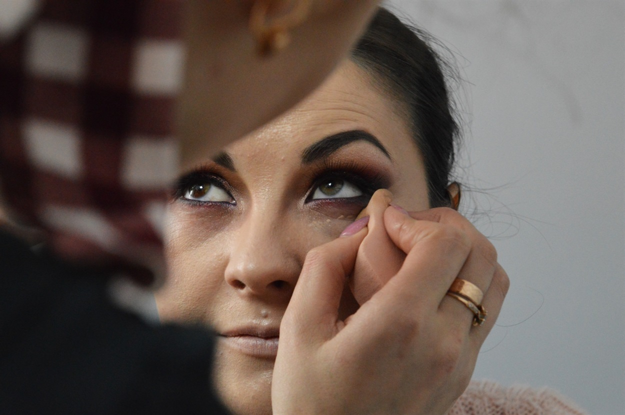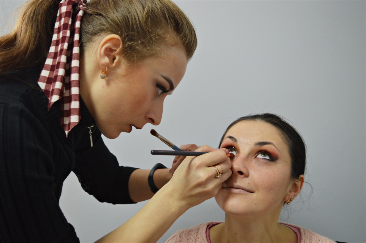 Із вибором мейку визначились одразу. "Це однозначно вечірній варіант. Для романтичної зустрічі підійдуть різні стилі: і smoky eyes, і голлівуд, і класика. Ми робитимемо останній, адже його різновиди пасують майже під усі події. Класика допомагає підкреслити природну красу, зробити правильні акценти. Якщо коротко, це виразні очі, затемнені в куточках повіки, гарний тон шкіри та вдало підібраний тон губної помади", - пояснює візажистка.