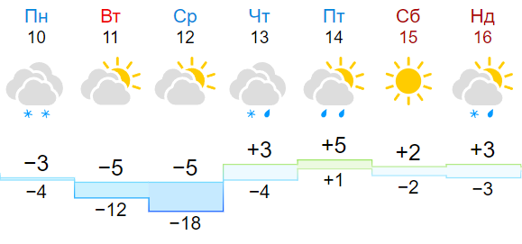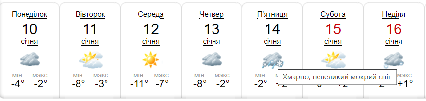 10 січня опадів синоптики не прогнозують. Температура повітря зранку -4, в обід -3, ввечері -4.