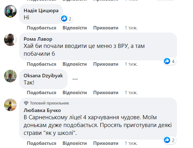 Хоч реформа шкільного харчування стартувала з 1 січня, ще не всі навчальні заклади перейшли на його нові стандарти. Сталося це, передусім, через тендери на закупівлі продуктів, які не провели вчасно. Тому деякі батьки в коментарях пишуть, що меню у школах не змінилось або дітей не харчують узагалі. Натомість у деяких закладах меню вже кардинально інше. І хоча є багато негативних відгуків, усе ж більшість батьків висловлюються про зміни позитивно.