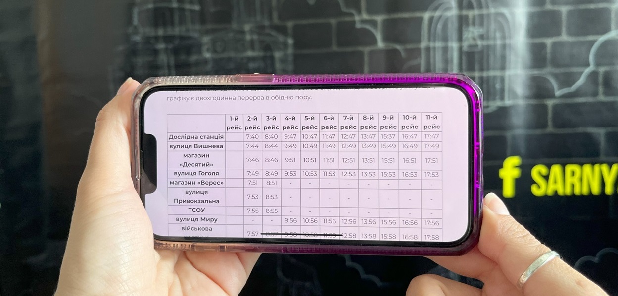 Громадський транспорт у Сарнах наразі курсує за зміненим графіком. Кількість рейсів під час воєнного стану зменшилась. Публікуємо актуальний графік руху маршруток по місту за інформацією, наданою Сарненською міською радою.