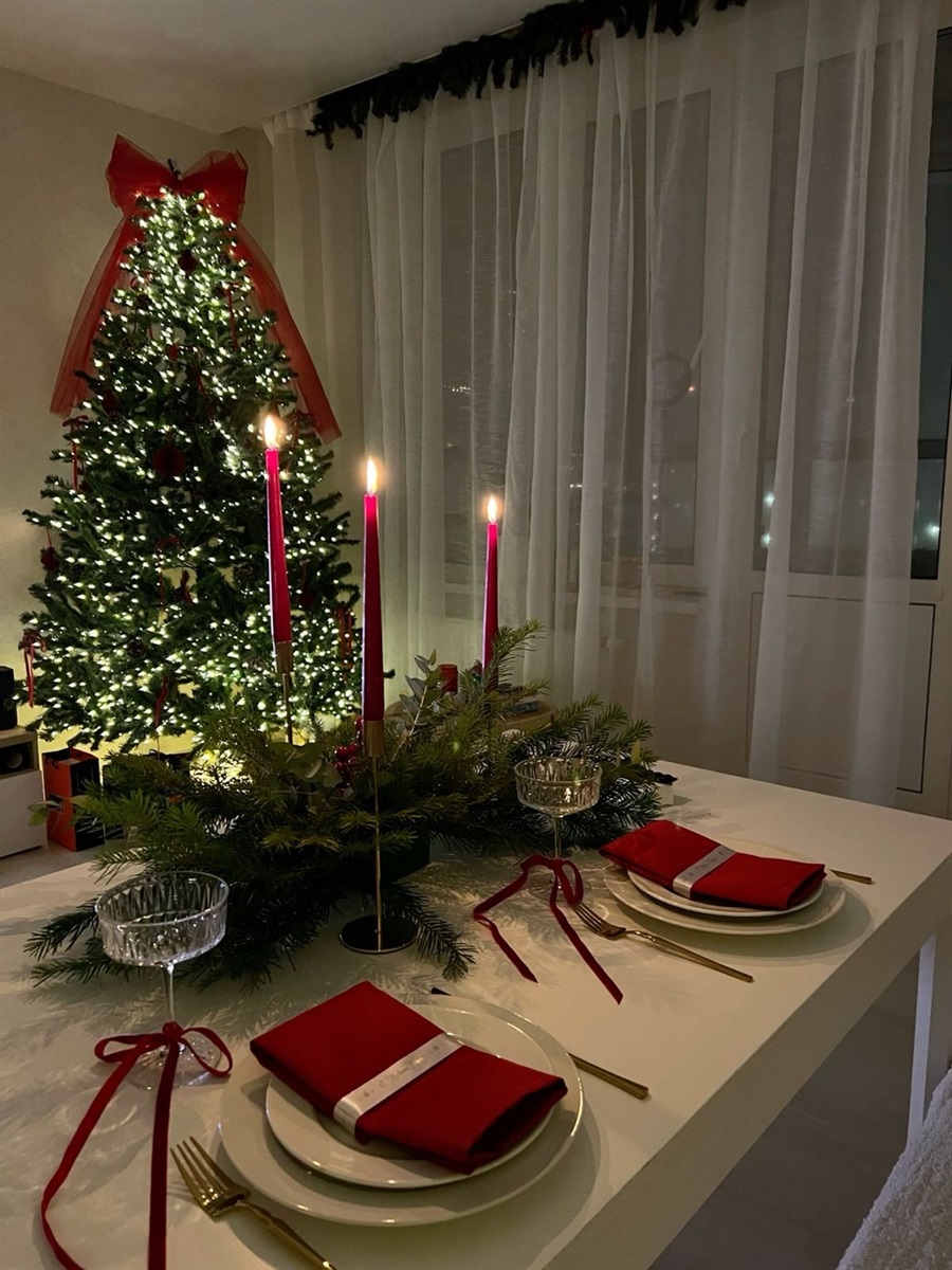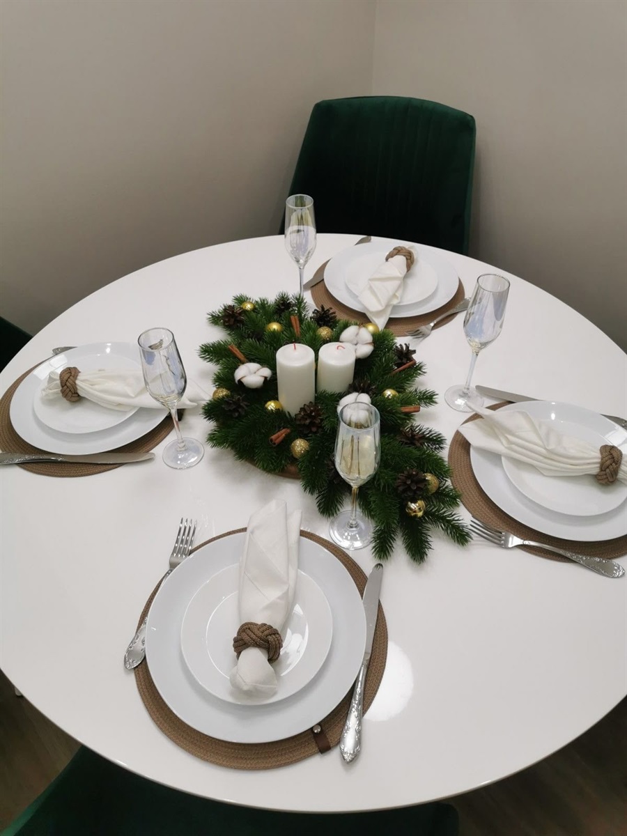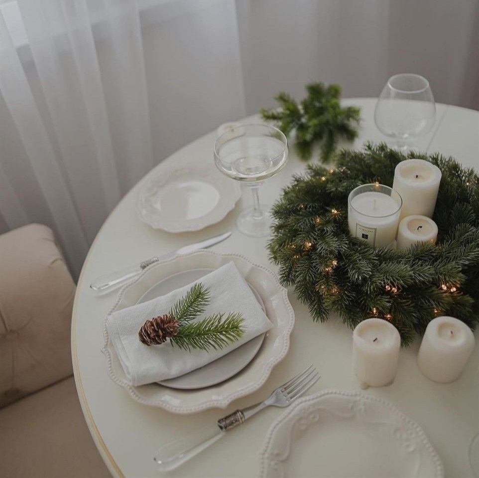 На центр столу Іванна Жук радить поставити прозорі склянки, які слугуватимуть підсвічниками, із пшеницею та свічками. Різдвяний віночок можна зробити із соломи або гілочок ялинки. А один із варіантів декору для хвойних вінків — дрібні іграшки. Оздобити святковий стіл також можна трендовими бантиками зі стрічок: як на підсвічниках, так і на серветках для гостей. До слова, стрічки, як і склянки та свічки, є в торговому центрі «Норма» за адресою вулиця Військова, 20.