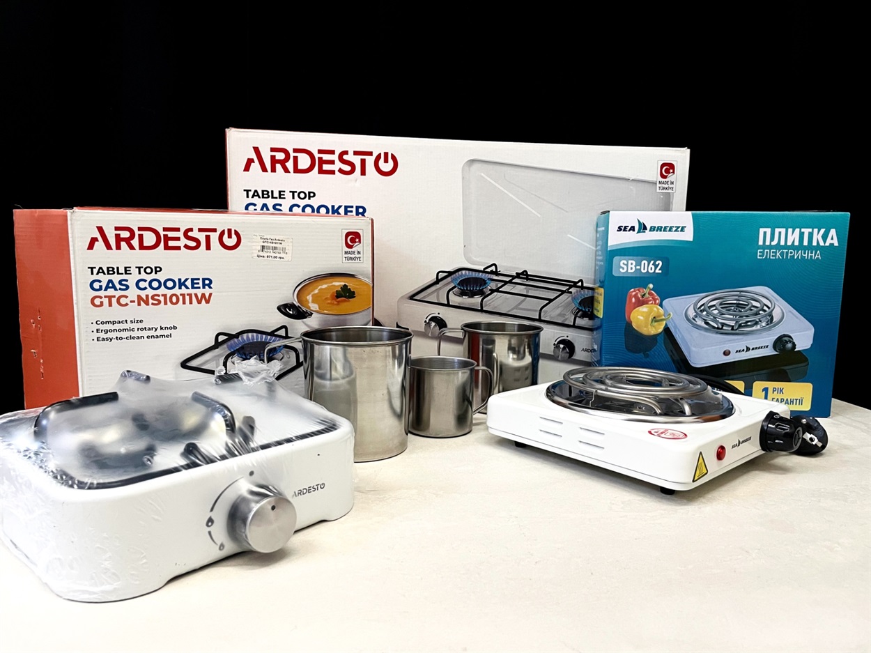Найбільш практичний варіант для приготування їжі під час відключень електроенергії — газові варильні поверхні. Якщо ж ваша оселя обладнана індукційними чи електричними плитами, у склад-магазині MARKOS є альтернатива — портативні газові плитки, що працюють на балонах, а також портативні електричні плитки (за наявності додаткового джерела живлення). Вони допоможуть як приготувати обід, так і підігріти готову їжу. Придбати також можна запальнички, газ для заправки, насадки на газові балони, газові пальники та сірники.