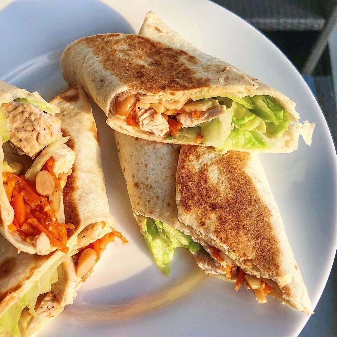 Інгредієнти: два яйця, цільнозернова тортилья, сир, помідор, куряче філе або рулет із філе курки.