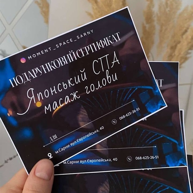 Японський SPA-масаж голови — це спосіб зняти нервову напругу, відчути легкість і розслаблення, а також оздоровити шкіру голови. Придбати подарунковий сертифікат на процедуру «перезавантаження» можна в Moment Space в Instagram. Адреса простору в Сарнах — вулиця Європейська, 40.