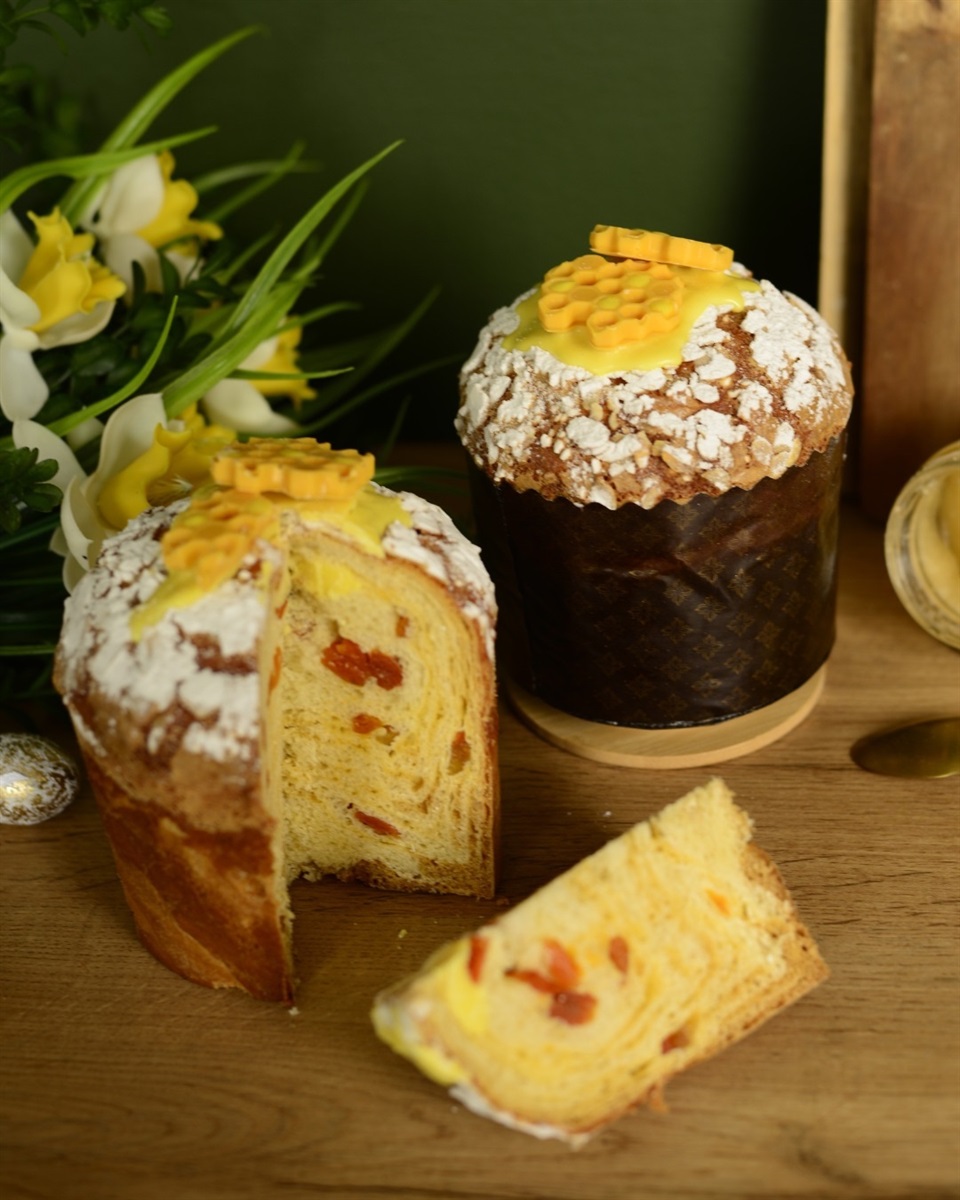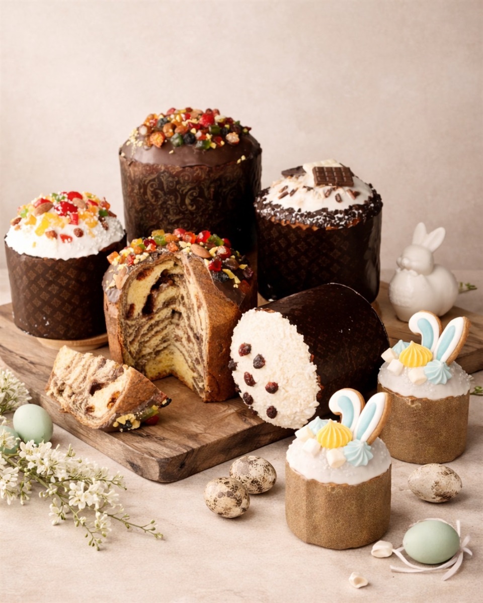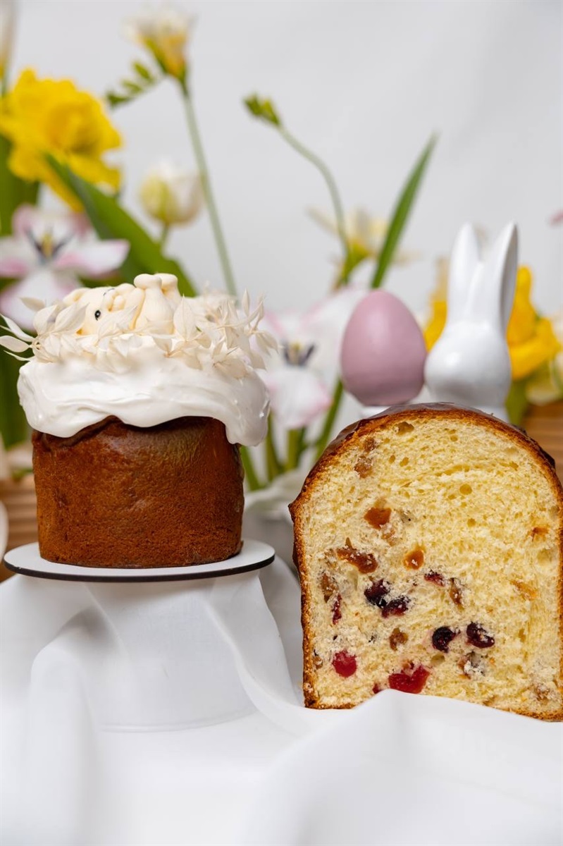 В асортименті кондитерської класичні паски із журавлиною, апельсиновими цукатами, родзинками та шматочками чорного шоколаду всередині. Оздоблені хрумким кракелюром на основі мигдалевого борошна. Є два види декору: