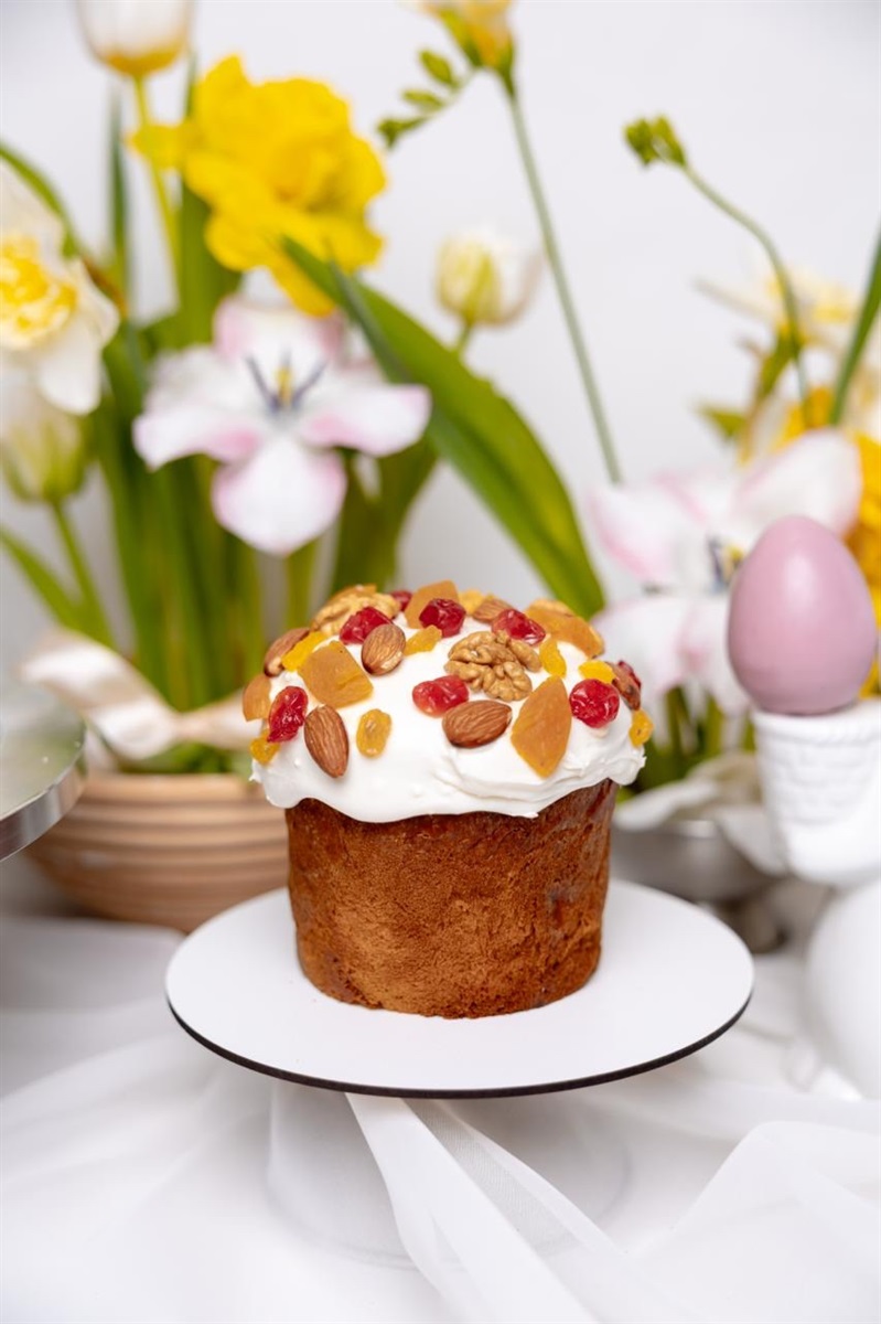 - традиційну паску за бабусиним рецептом, оздоблену сухофруктами з горіхами або квіткою — 180 грн (150 г), 340 грн (300 г), 585 грн (500 г);