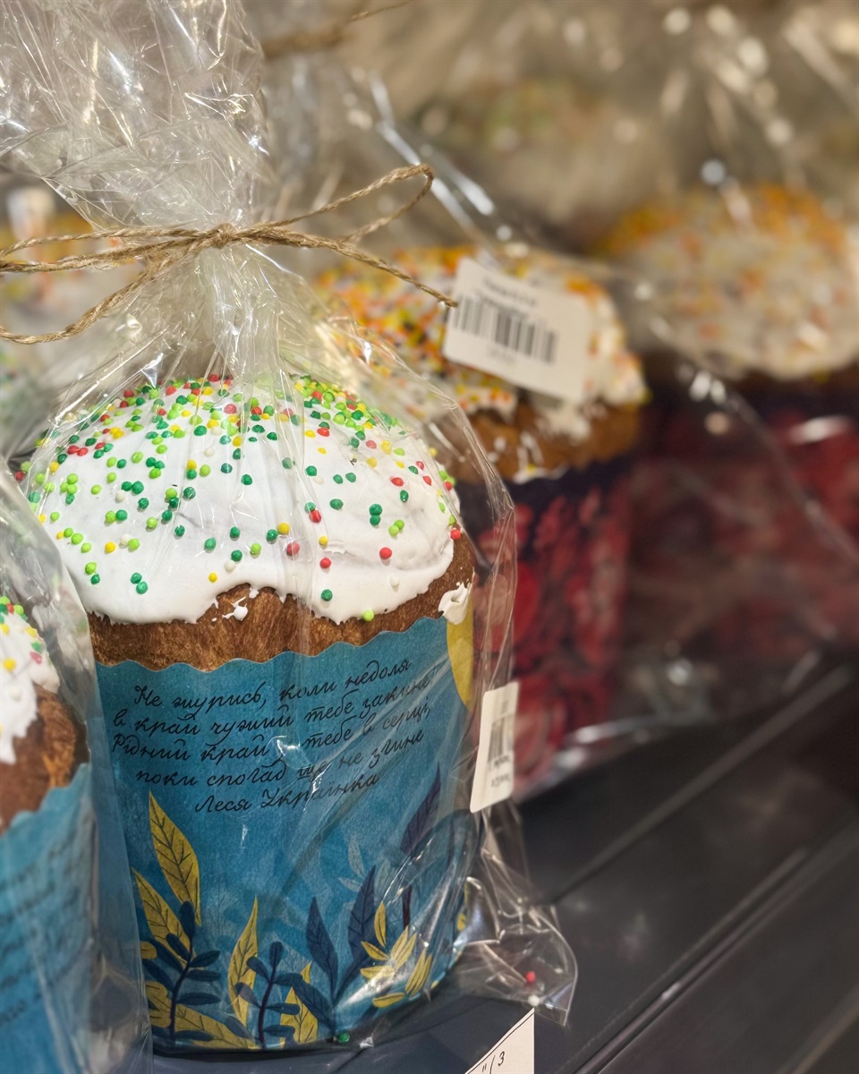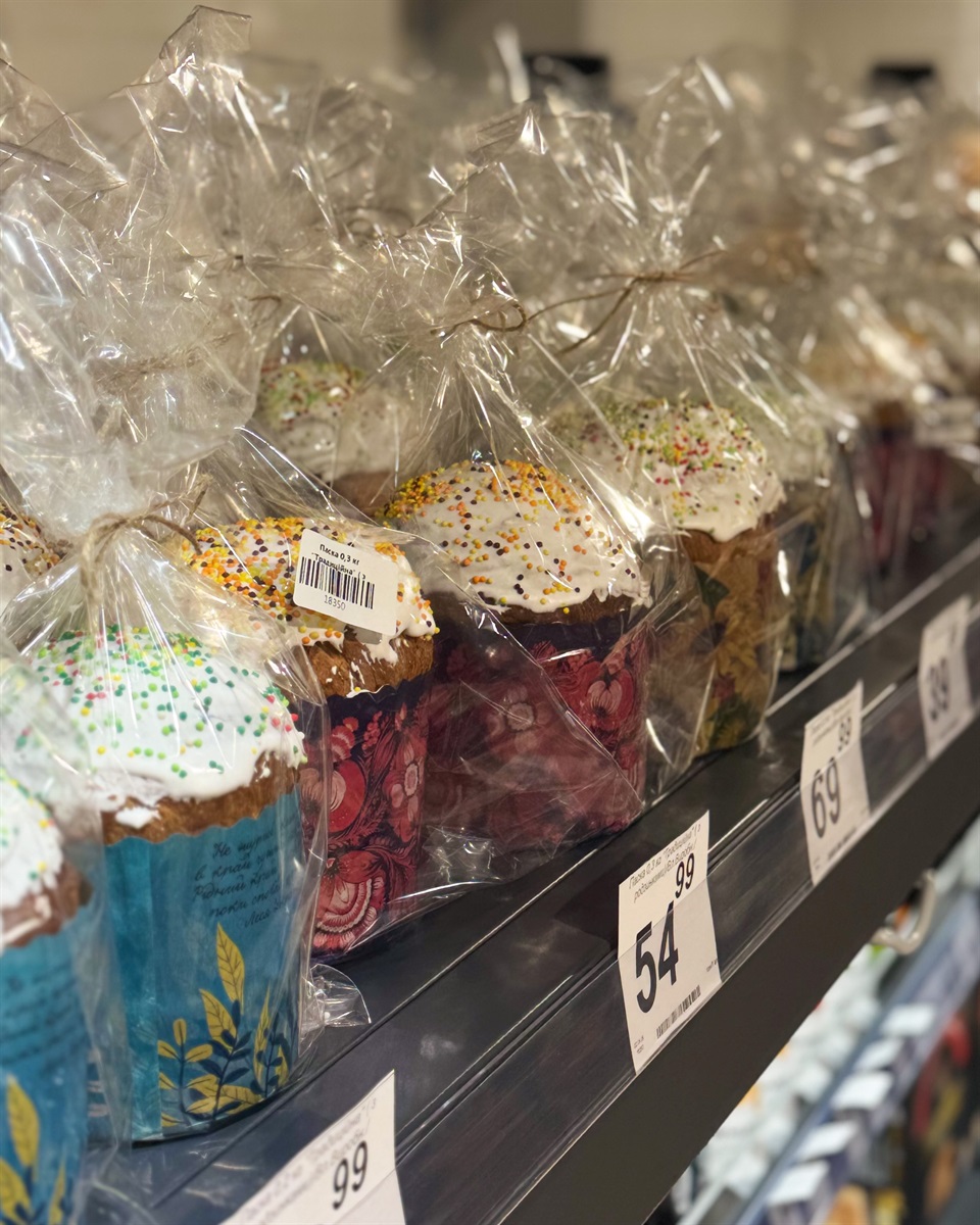 У мережі продовольчих маркетів «THRASH! ТРАШ!» підготували два види великодньої випічки: класичний кекс із глазурʼю вартістю 99 гривень та шоколадний кекс із дропсами за 89 гривень. Вага — 250 грамів.