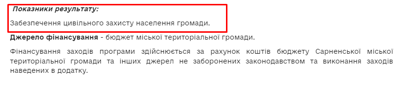 Однак враховуючи очікуваний показник результату, який зазначений в програмі, а саме: забезпечення цивільного захисту населення громади — виділених коштів очевидно буде не достатньо.