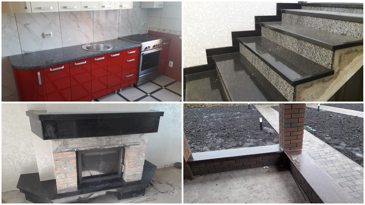 Пам’ятники, підвіконня, столи, лавки, сходи, балясини, плитку, квітники, вази. Можливі інші вироби та робота залежно від замовлення: декорація, поліровка чи реставрація готового виробу.