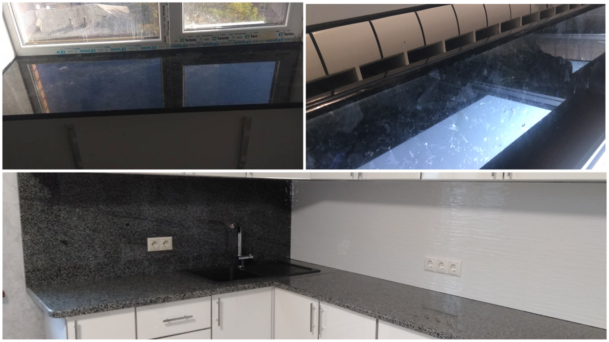 Майстерня виготовляє вироби лише з якісного житомирського граніту. На вибір є більше 18 відтінків різних кольорів: чорний, зелений, синій, червоний. Граніт чудово пасує під будь-який інтер'єр. Матеріал витримує постійну вологу, холод та спеку. Крім того, пошкоджені деталі виробу легко замінити.