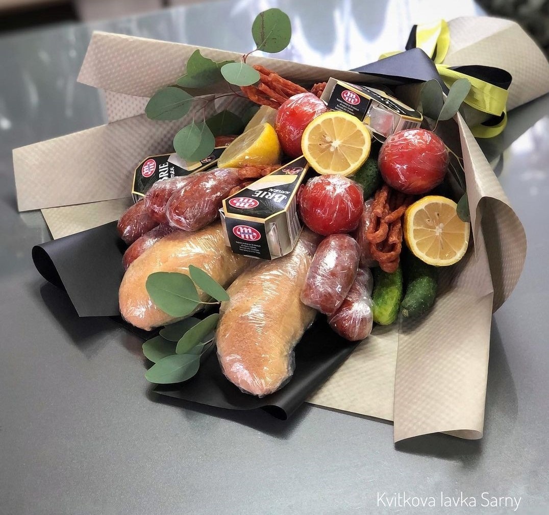 Це те, що точно здивує. Їстівні букети можуть бути солодкими чи солоними, фруктовими чи овочевими. Їх склад підберуть за вашим індивідуальним замовленням. Для таких композицій «Квіткова лавка» використовує лише свіжі та якісні продукти. Це не просто привабливий, а й смачний і практичний подарунок як для жінок, так і для чоловіків. Після привітання та фотосесії – він може легко доповнити святковий стіл.