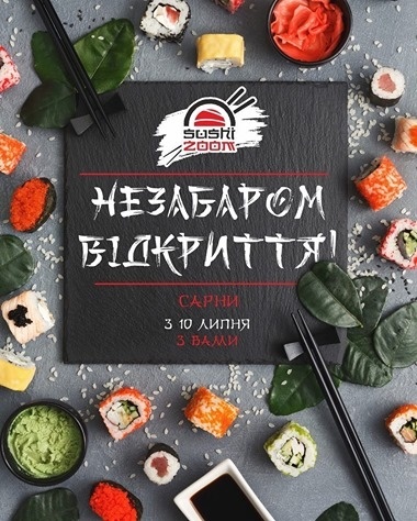 Новий суші сервіс в Сарнах відкриється 10 липня і вже готовий дарувати свою продукцію. Адже знають, як місцеві жителі полюбляють роли. "Sushi Zoom" пропонує різноманітне меню, широкий вибір та постійні новинки. Доставлять у будь-яку точку міста або зроблять 5% знижки, якщо заберете суші самостійно.
