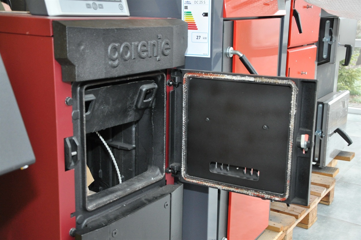 Котел твердопаливний традиційний "Gorenje". Завантаження йде від трьох до п’яти годин. Споживає будь який вид палива – торф, брикет, вугілля, дрова. П’ятиміліметрова котлова сталь. Параметри виставляють в автоматичному режимі. Працює без втручання власника. Температурою і насосами керує сам.